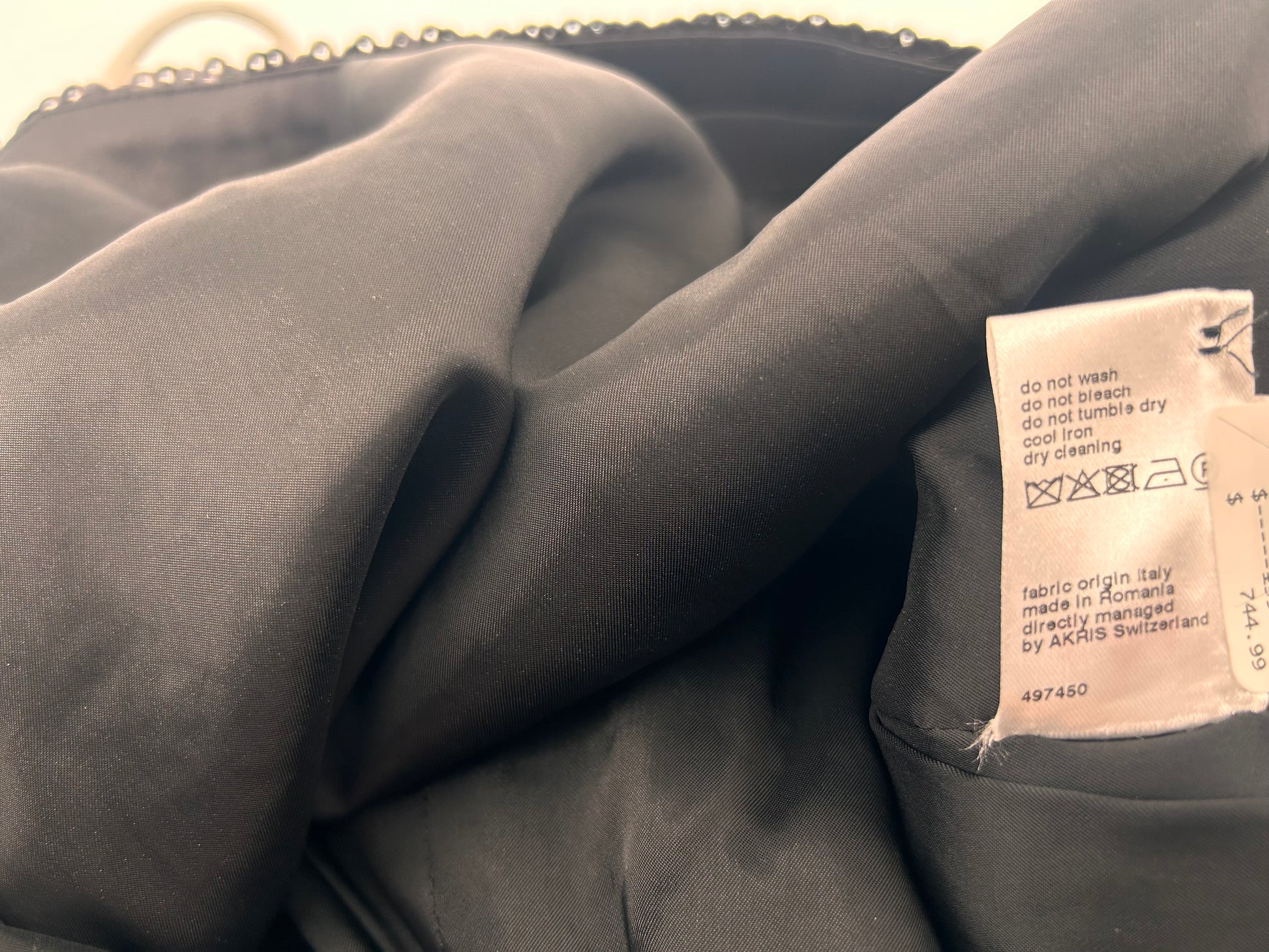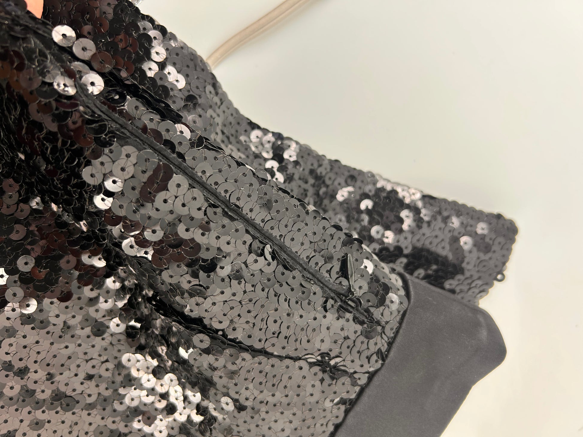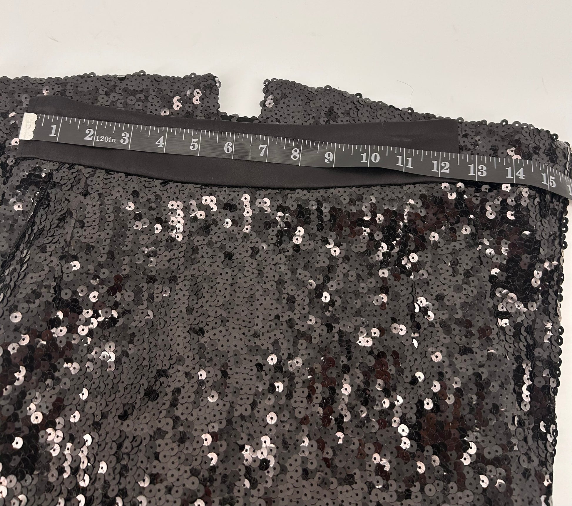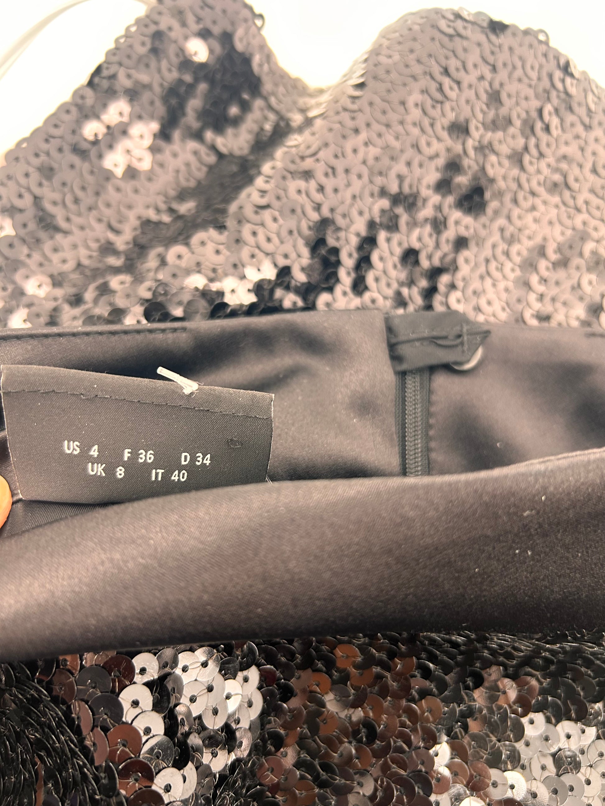 The AKRIS Black Sequin Beaded Pencil Skirt is a luxurious garment designed for special occasions like weddings and parties. Made from polyester with a sequin fabric type, this skirt features a solid black color with beaded accents, giving it a touch of elegance and glamour. With a midi length and straight pencil style, this skirt is perfect for the winter, fall, and spring seasons. The skirt is lined and includes pockets for added functionality, making it a stylish and practical choice for any fashion-forward woman seeking a touch of quiet luxury in her wardrobe. Good condition Black sequins with slit in back 1 zip pocket Size US 4 Measurements Waist 13” Hips 16” Length 27” |