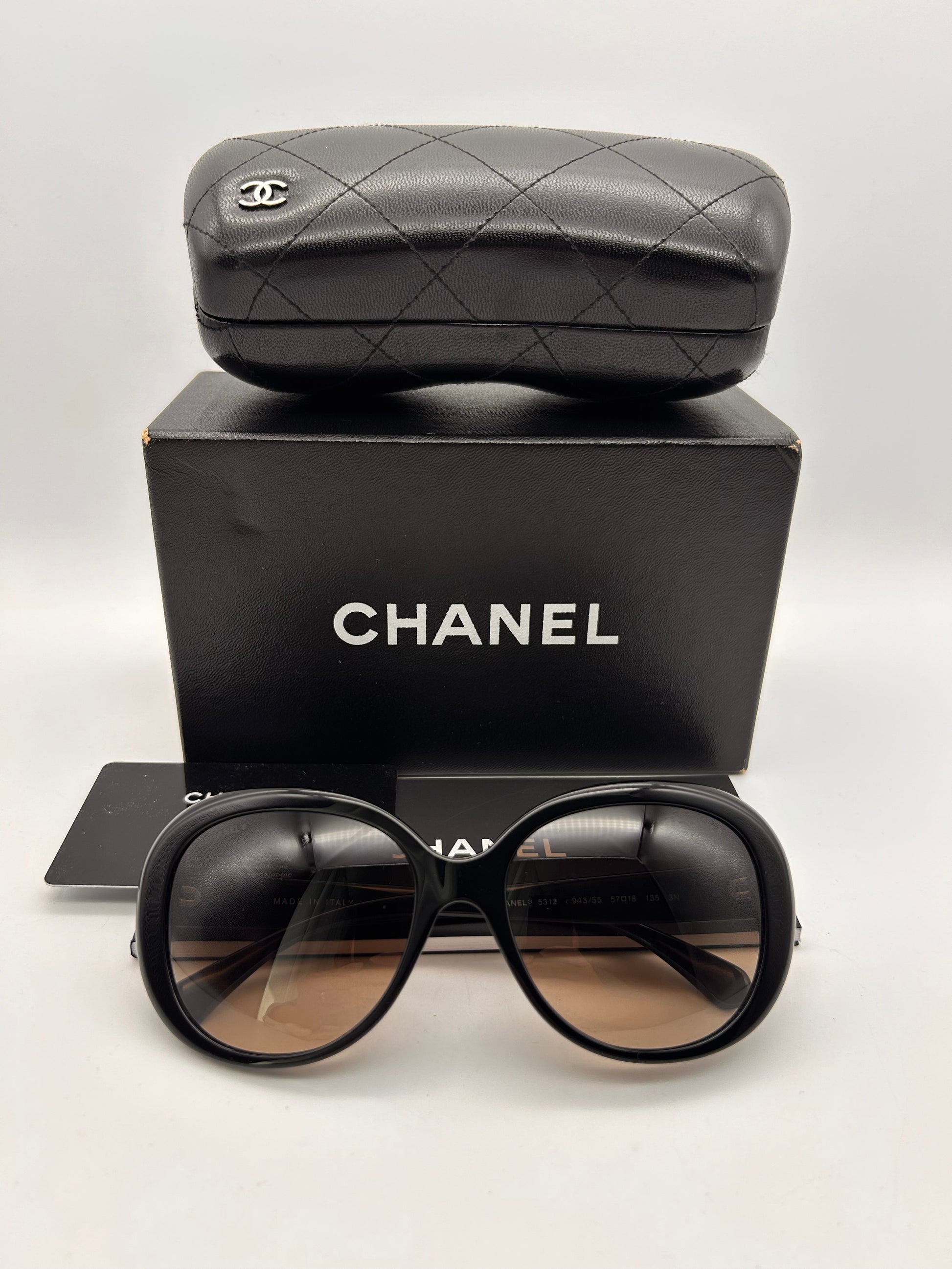 Chanel 5312 943 S5 2 Tone Black White Frame with Brown Lens Full Rim Sunglasses