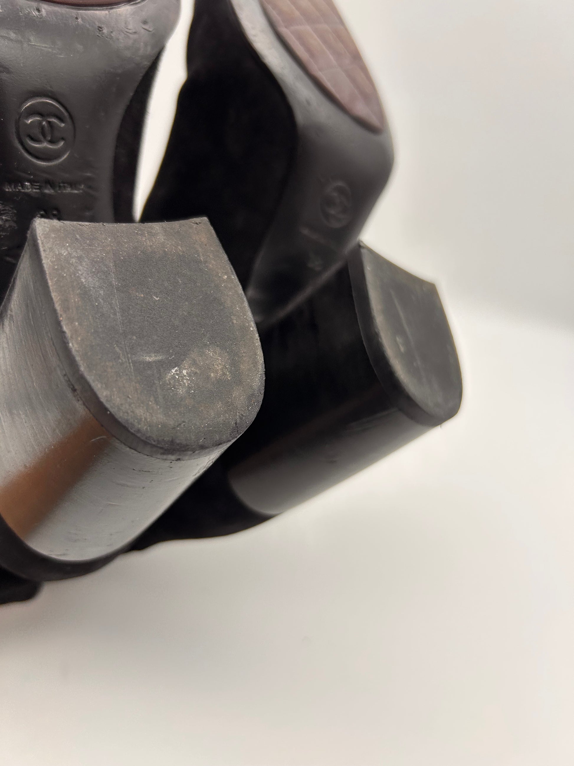 Black suede with understated CC logo