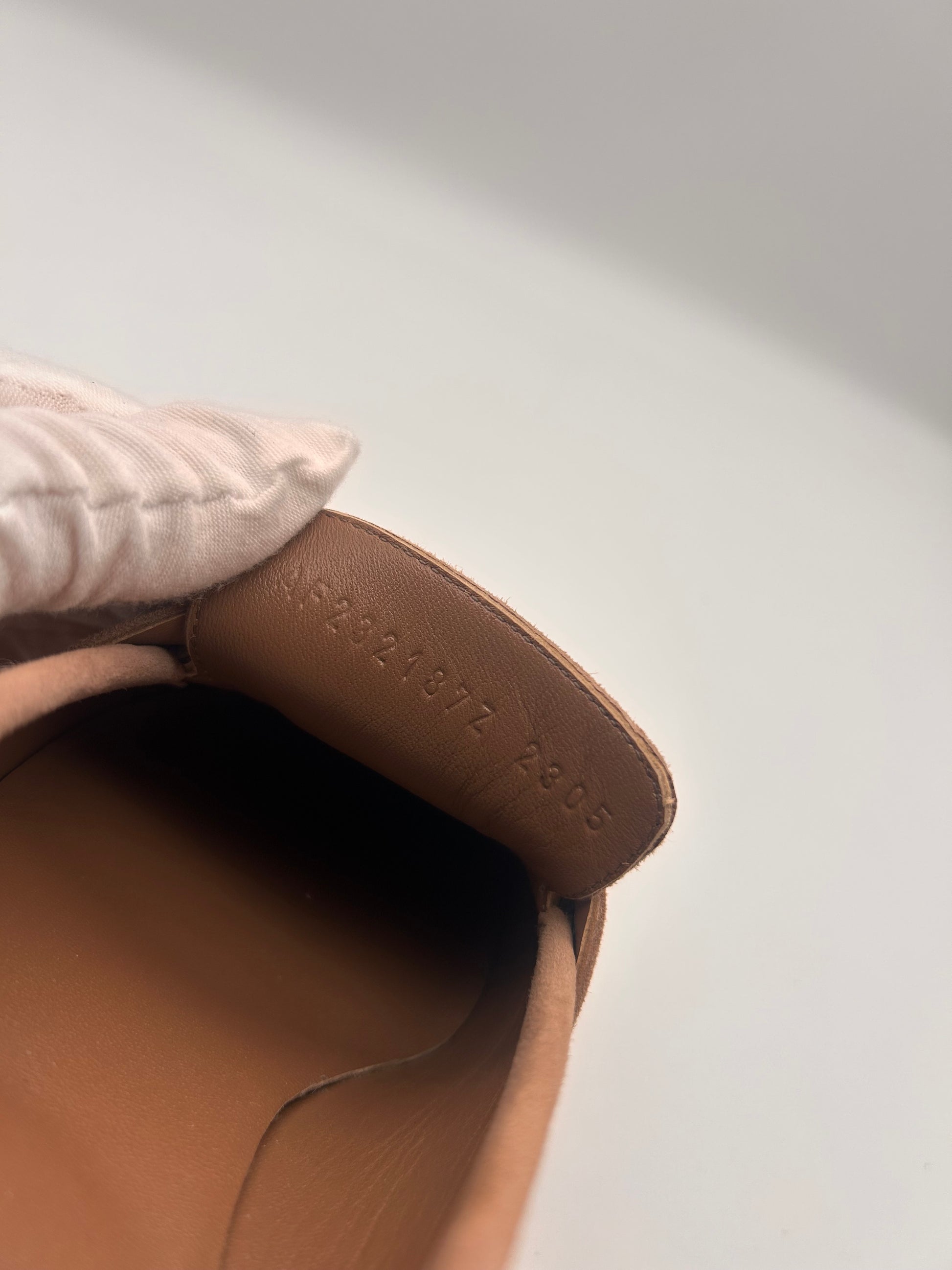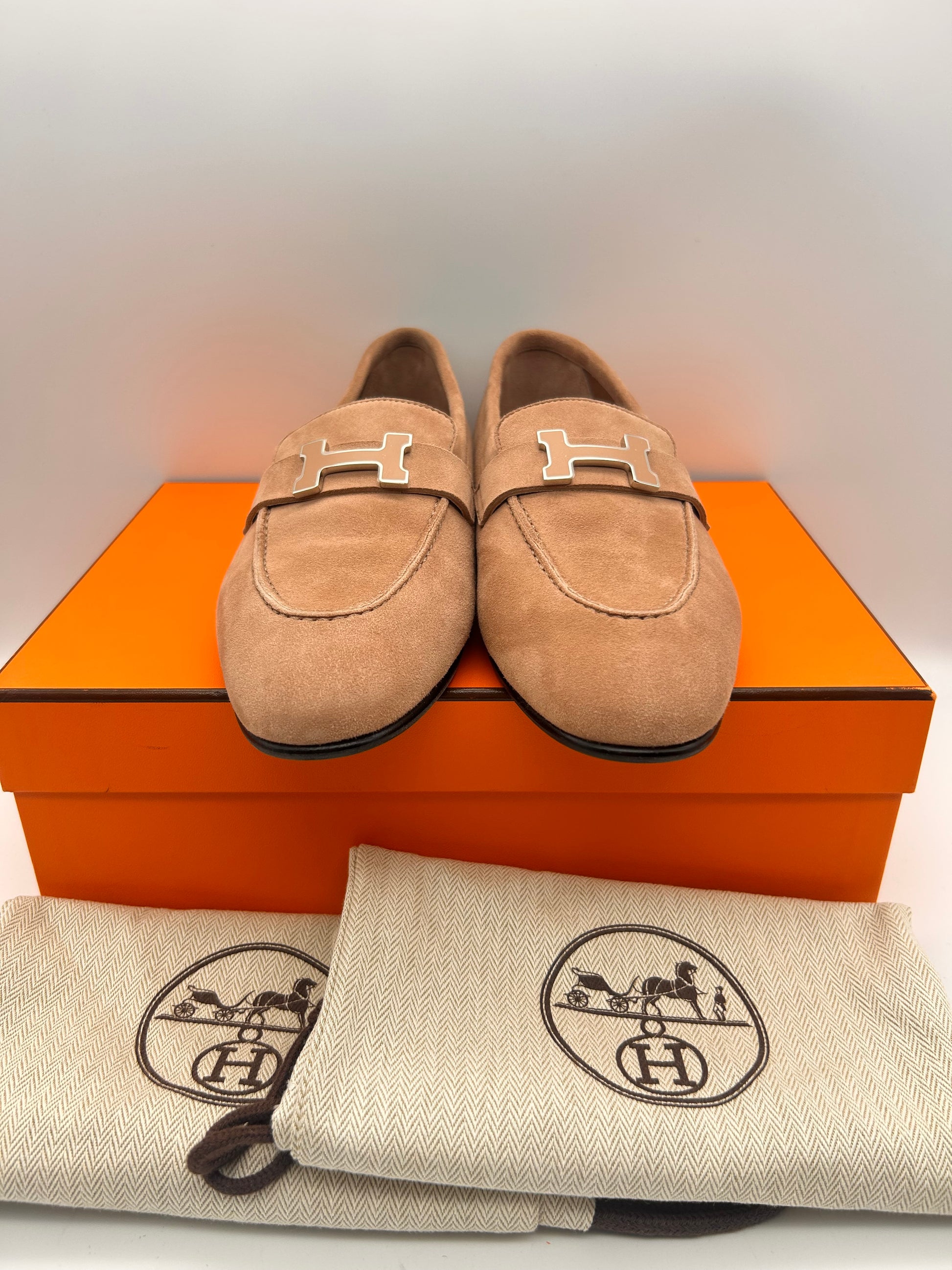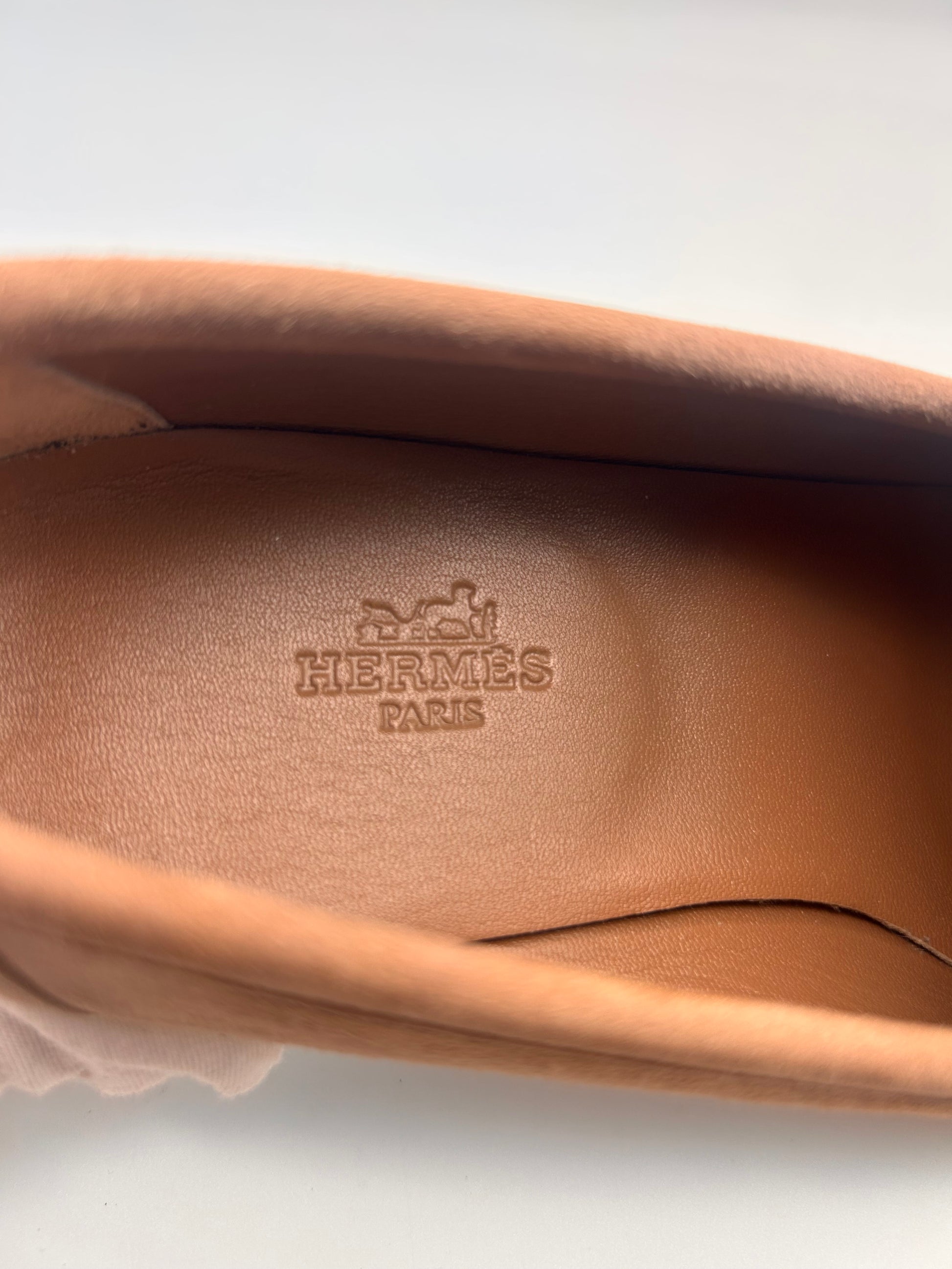 The Hermes Paris Loafer in suede rose Perle, size 37.5, is a luxurious and stylish flat shoe perfect for casual, formal, or business occasions. Featuring a slip-on closure and leather lining, these loafers offer comfort and convenience. The pink suede upper material, leather outsole, and insole, along with the designer HERMÈS logo, add a touch of elegance to any outfit. With a lightweight design and buckle feature, these loafers are both fashionable and practical for the modern woman looking for a high-quality and versatile shoe. New in box Hermes Paris loafers in rose perle with enamel and silver buckle Size 37.5 Comes with box and dustbags 10” heel to toe |